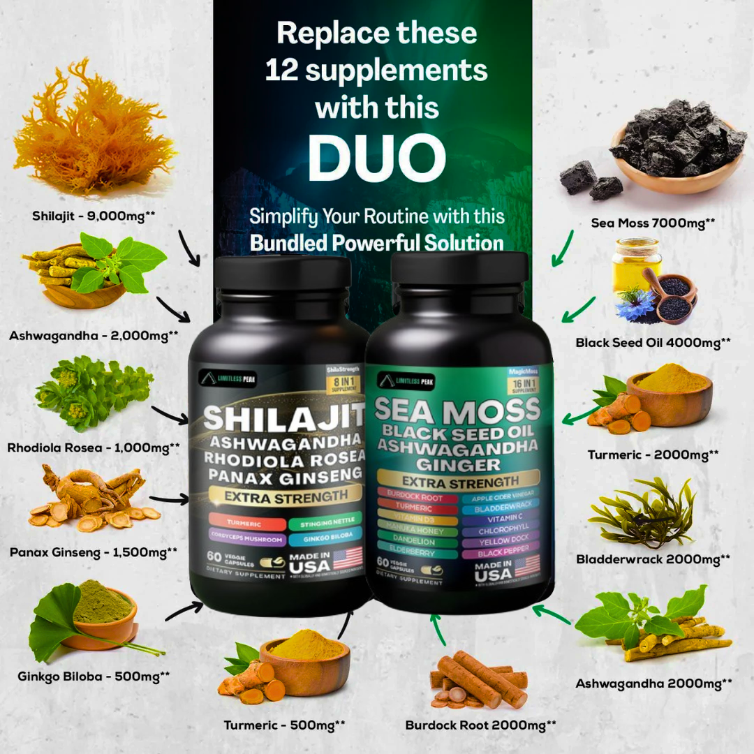 Take 2 capsules of Sea Moss and 1 capsule of Shilajit daily.