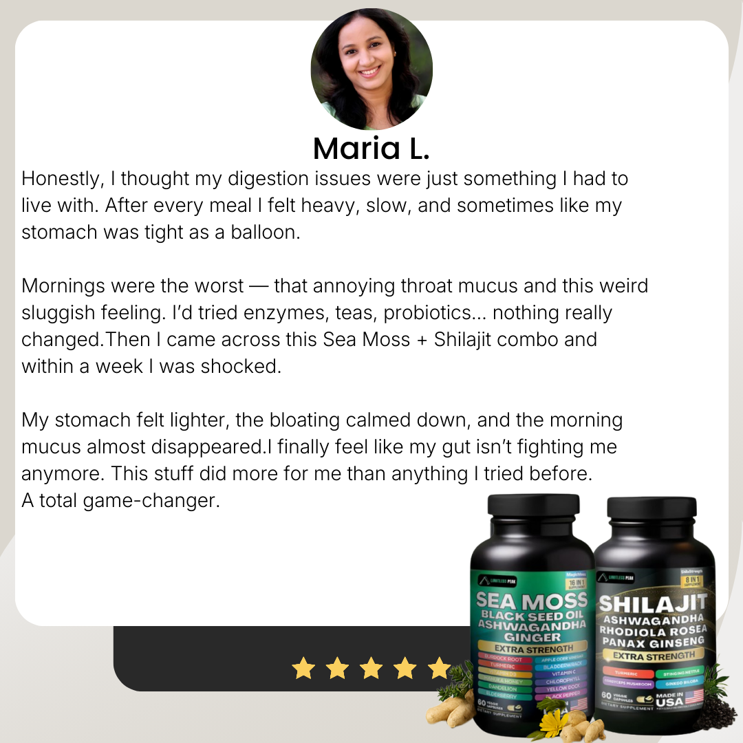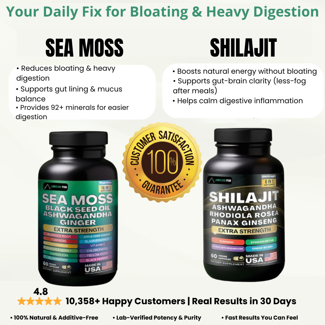 Sea Moss + Shilajit doesn’t soothe the symptoms — it clears what’s clogging your system and refuels your gut at the root.